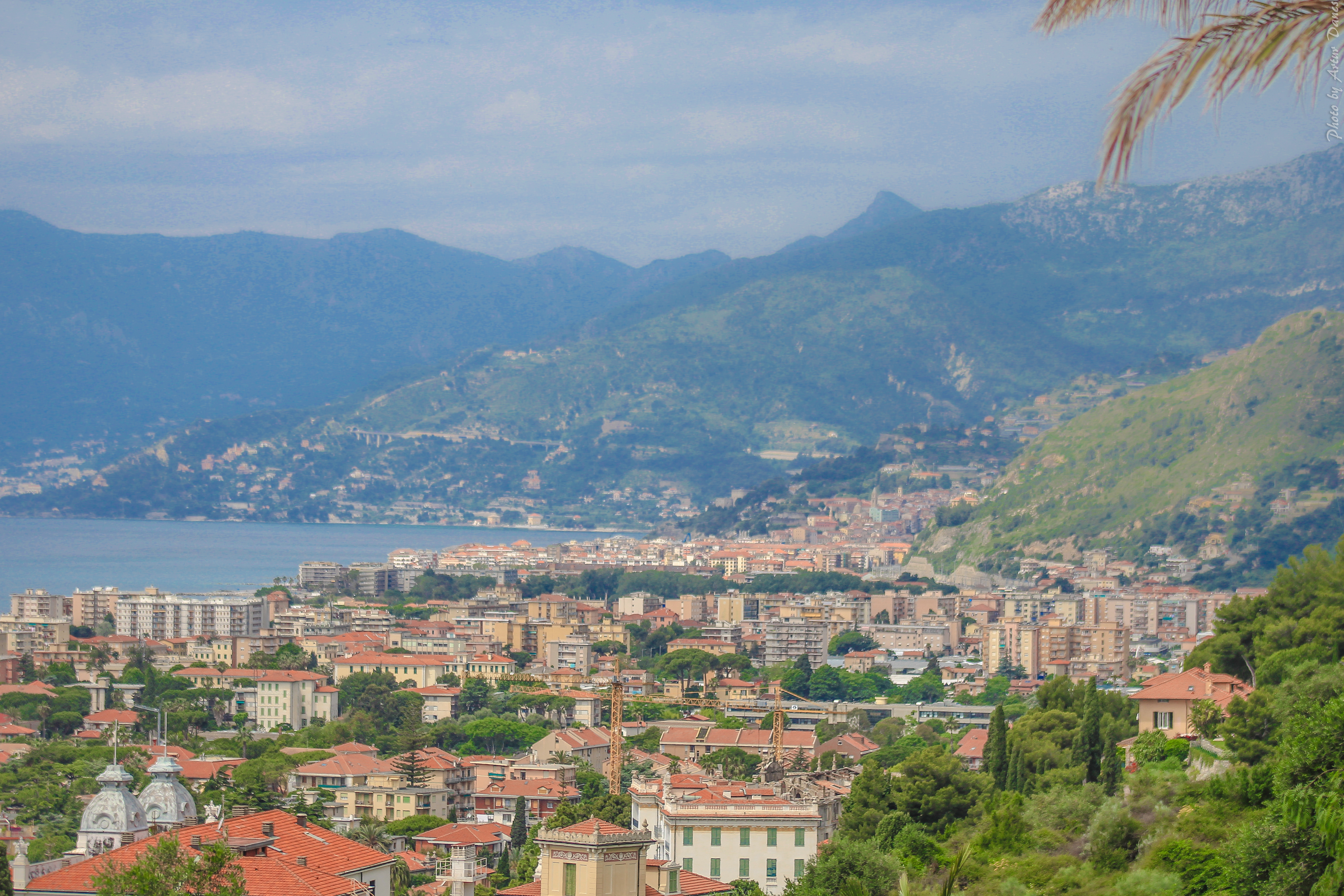 Extended view of Bordighera, Vallecrossia, Ventimiglia and the French Alps